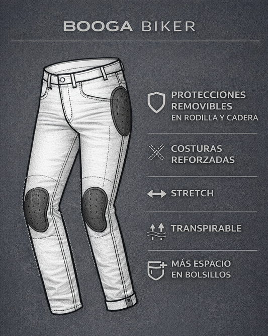 "En Booga, sabemos que rodar no es solo salir en tu moto: es expresar quién eres. Nuestros jeans de protección son para todo tipo de biker, porque la seguridad y el diseño premium no entienden de estilos o cilindradas -->